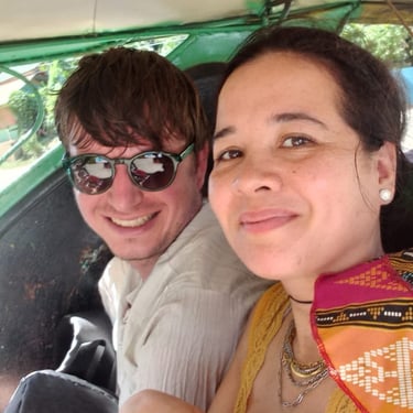 Une fois à l'aéroport, on prend un tricycle (sorte de Touktouk local) et on va au centre ville prendre un petit déjeuner sur un rooftop avec vue magnifique mais ascenseur cassé 5 étages à pied c'était dur. Heureusement buffet à volonté très bon et service top ça valait le coup.