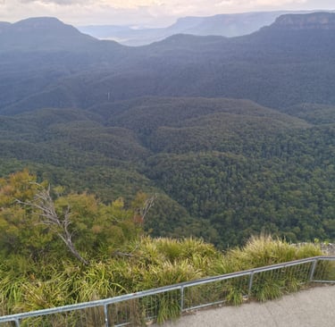 Tant pis, ça ne va pas m'empêcher de profiter du moment. Il m'amène à un point de vue sur une montagne appelé les trois sœurs car il y a trois rochers ici.