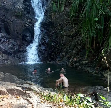 Heureusement, mon guide est là pour m'aider et on avance lentement mais sûrement. La randonnée de 45 min se transforme en 2h mais on est parti tôt et tout va bien on y arrive à cette fameuse cascade.