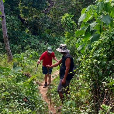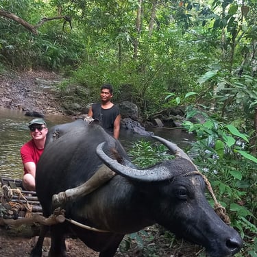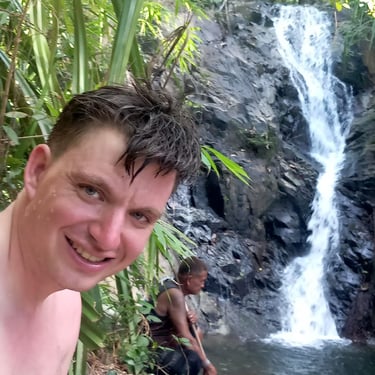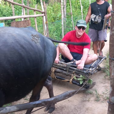 Aujourd'hui grosse randonnée pour aller voir une magnifique cascade, Nagkalit-Kalit, situé à 20 min en tricycle de notre hôtel. Randonnée de plusieurs heures avec des reliefs rappelant une randonnée faite pour une cascade à Marrakech ou encore sur l'île de la Réunion. Aller compliqué ça a pris du temps, on a croisé une dizaine de personnes me disant que je ne pouvais pas le faire mais ils ne me connaissent pas et je sais que je peux le faire même si ça risque de prendre du temps. Résultat on l'a fait même si 2h au lieu de 45 min initiale dit et magnifique cascade c'est génial. Mon guide m'a quand-même bien aidé tout du long j'aurai galéré seul. Retour il me porte sur ses épaules sur les parties difficiles pour gagner du temps puis on me propose de me faire aider par un carabao, un buffle d'eau domestique. Résultat très belle randonnée avec encore plein de souvenirs mémorables.