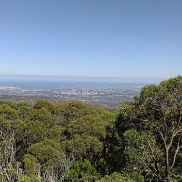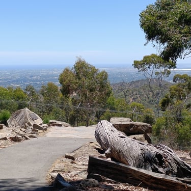 Avec ma chance folle habituelle, je tombe sur un groupe de touristes qui font un voyage organisé et le bus nous fait un arrêt de 10 min en haut de la colline, le mont Lofty sur la route qui mène au parc Cleland, pour profiter de la vue.