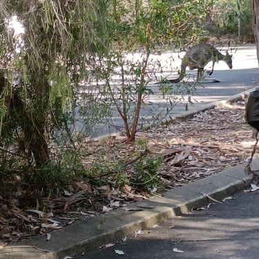 Pouf, je croise des gens, je leur demande pour les kangourous, on me dit oui va là-bas y en a plein, y a des croisements partout je doute de mon chemin je redemande à quelqu'un on m'indique la bonne route, puis une troisième personne car y a vraiment beaucoup de chemins possibles à chaque fois et on est à la limite du hors sentier comme ils appellent, et elle me dit ils se cachent les kangourous tu ne vas pas en voir beaucoup.