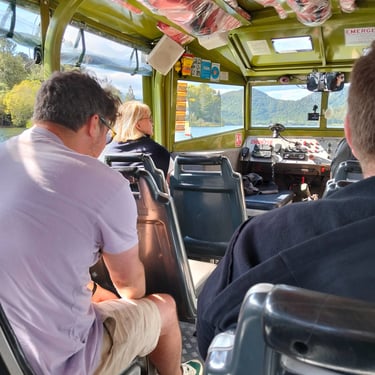 Tour vraiment très sympa avec une guide qui a le sens de l'humour et c'est un tour des lacs de Rotorua qu'on fait avec un véhicule spécial amphibie nommé le Duck qui date de la seconde guerre mondiale créé quand les alliés devaient aller récupérer leurs provisions dans la mer.