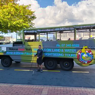 J'avais déjà prévu ce duck tour à Rotorua depuis Matamata donc je suis heureux maintenant qu'il a lieu. C'est juste un camion roulant dans l'eau mais ça reste sympa. Excité aussi car je revois Chris et Kim demain.