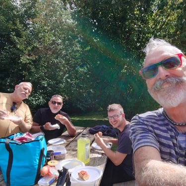 Petit arrêt point de vue sur la route avec quelques photos, petit pique nique près d'un coin pittoresque avec une sculpture d'une immense botte, petit arrêt petit coin et un ou deux Opshop.