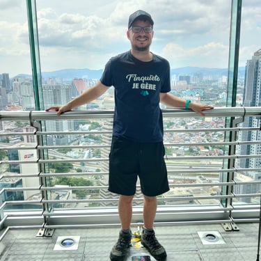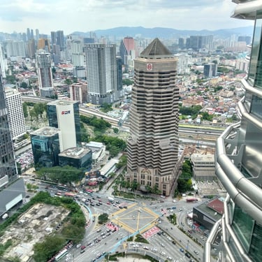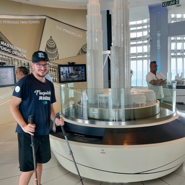 Je me rends compte qu'on peut visiter les Twin towers donc j'y vais, c'est complet mais on me fait une fleur je peux y rentrer et pour moitié prix vu mon handicap. Visite très sympa avec vue dingue sur tous les gratte-ciel de Kuala Lumpur.