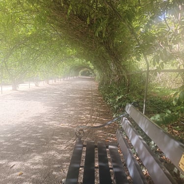 Même dans le parc, il continue à faire chaud, je trouve un endroit pour grignoter un morceau et boire un verre car je transpire comme jamais au point que j'ai peur de tomber car mes mains glissent sur mes cannes.