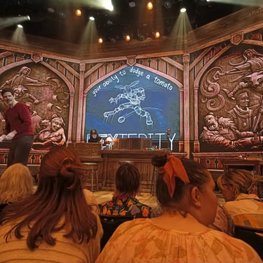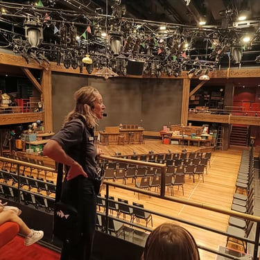 Pendant la visite, elle nous présente une plus petite pièce car l'Opéra de Sydney ne fait pas que des opéras mais aussi du théâtre et il y a un show Donjons et dragons en ce moment.