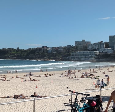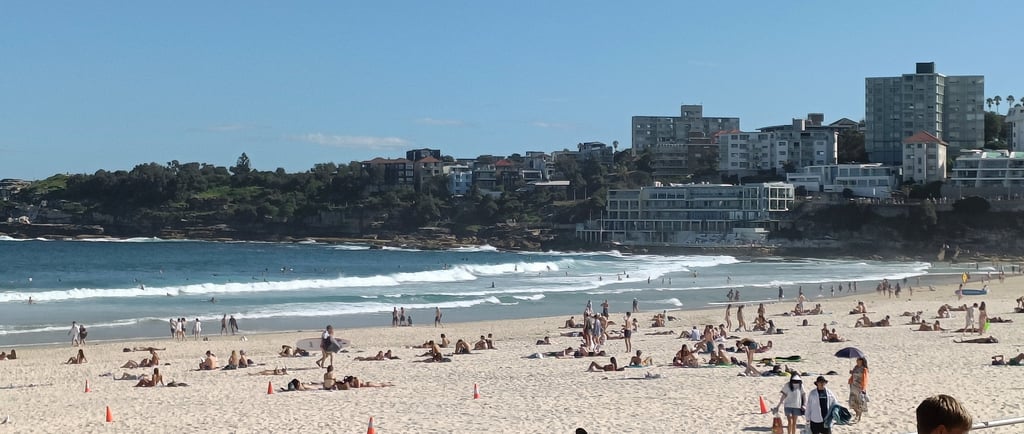 Je pars juste l'après-midi après un petit repas végétalien que nous avait préparé notre hôte. Destination la plage de Bondi qui est pas mal chargé, ce qui m'embête un peu car j'aime quand y a pas grand monde...