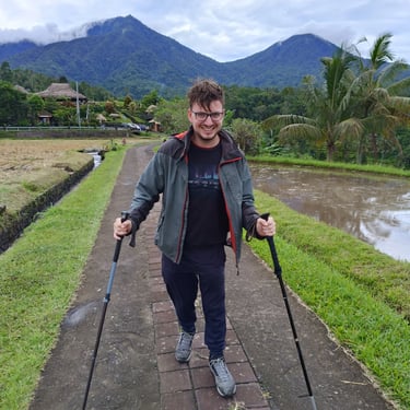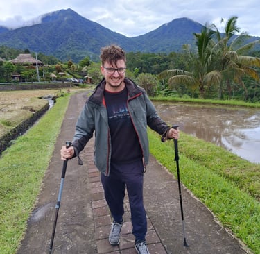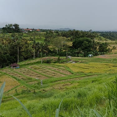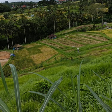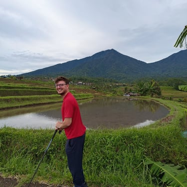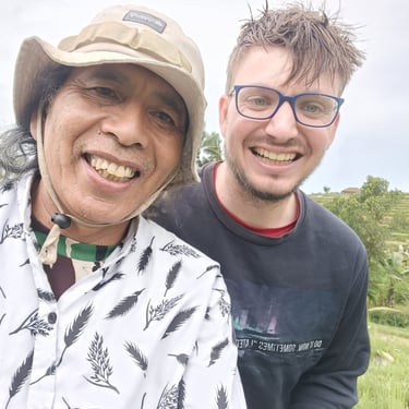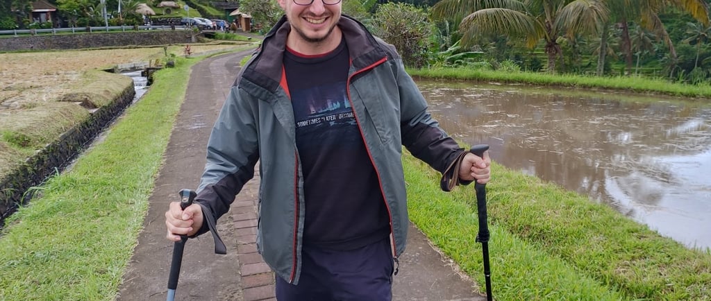 Randonnée au milieu des rizières aujourd'hui. Pas prévu à la base mais le patron de mon Airbnb m'a proposé de m'amener faire un tour et malgré le fait qu'il a une blessure au pied, il est quand-même motivé pour faire cette petite randonnée.