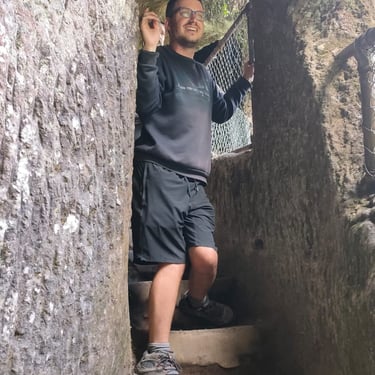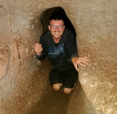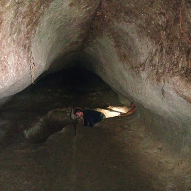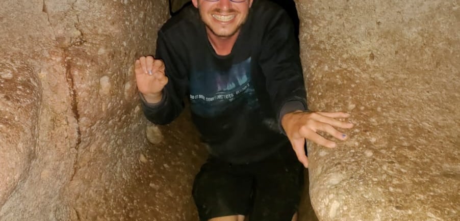 On passe même dans un coin super étroit dans une grotte que Chris ne connaissait pas avant que bien sûr par curiosité je décide d'y aller même si j'ai dû être à quatre pattes dans la grotte.