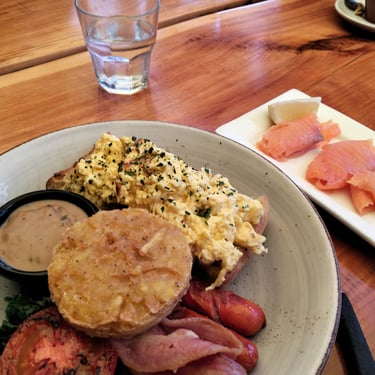 On se trouve un endroit pour prendre un petit déjeuner et me montrer une magnifique église où il y a un Jésus marchant sur l'eau avant de faire une belle cascade avec pas mal de marches mais ça va on prend notre temps et on gère.