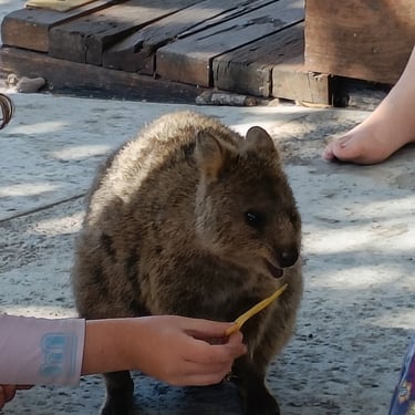 On ne voit malheureusement pas beaucoup de Quokkas, île pour laquelle ils sont réputés vivre car c'est un animal nocturne et ils sont tous cachés à l'ombre vu la chaleur .